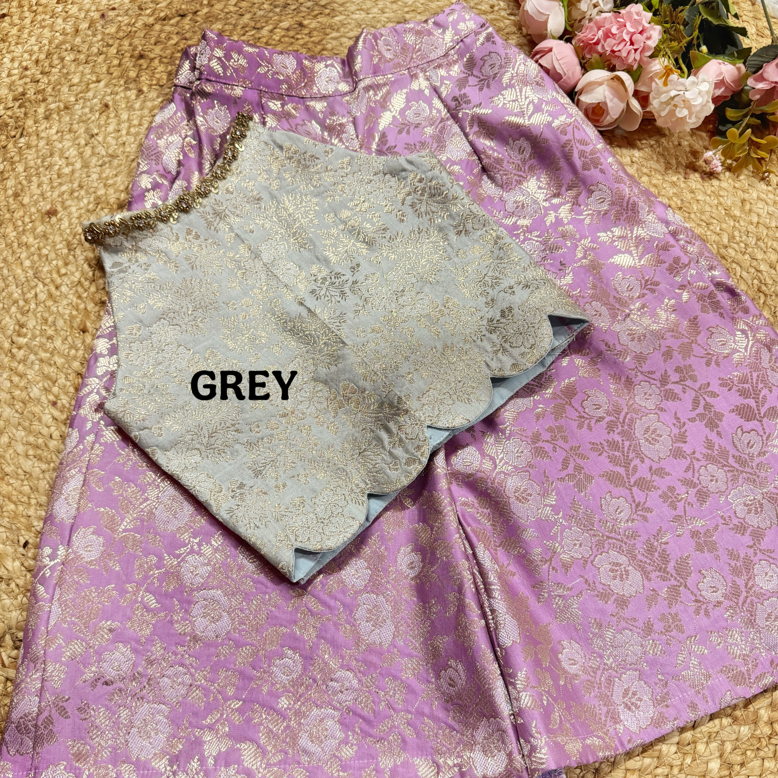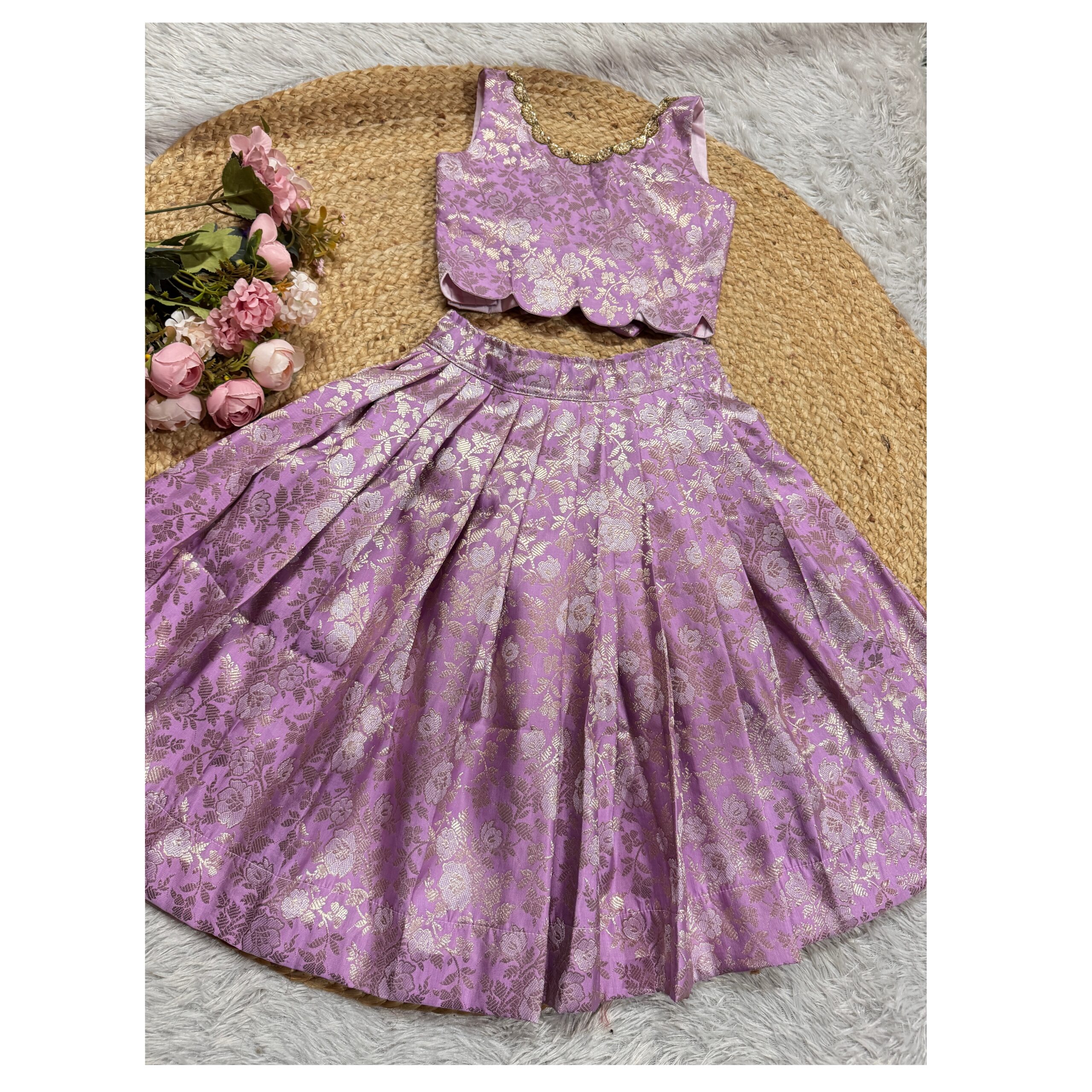 ▪Material :- DOLA SILK LIGHT WEIGHT SKIRT VIOLET AND LAVENDER BANARSI SILK BLOUSE