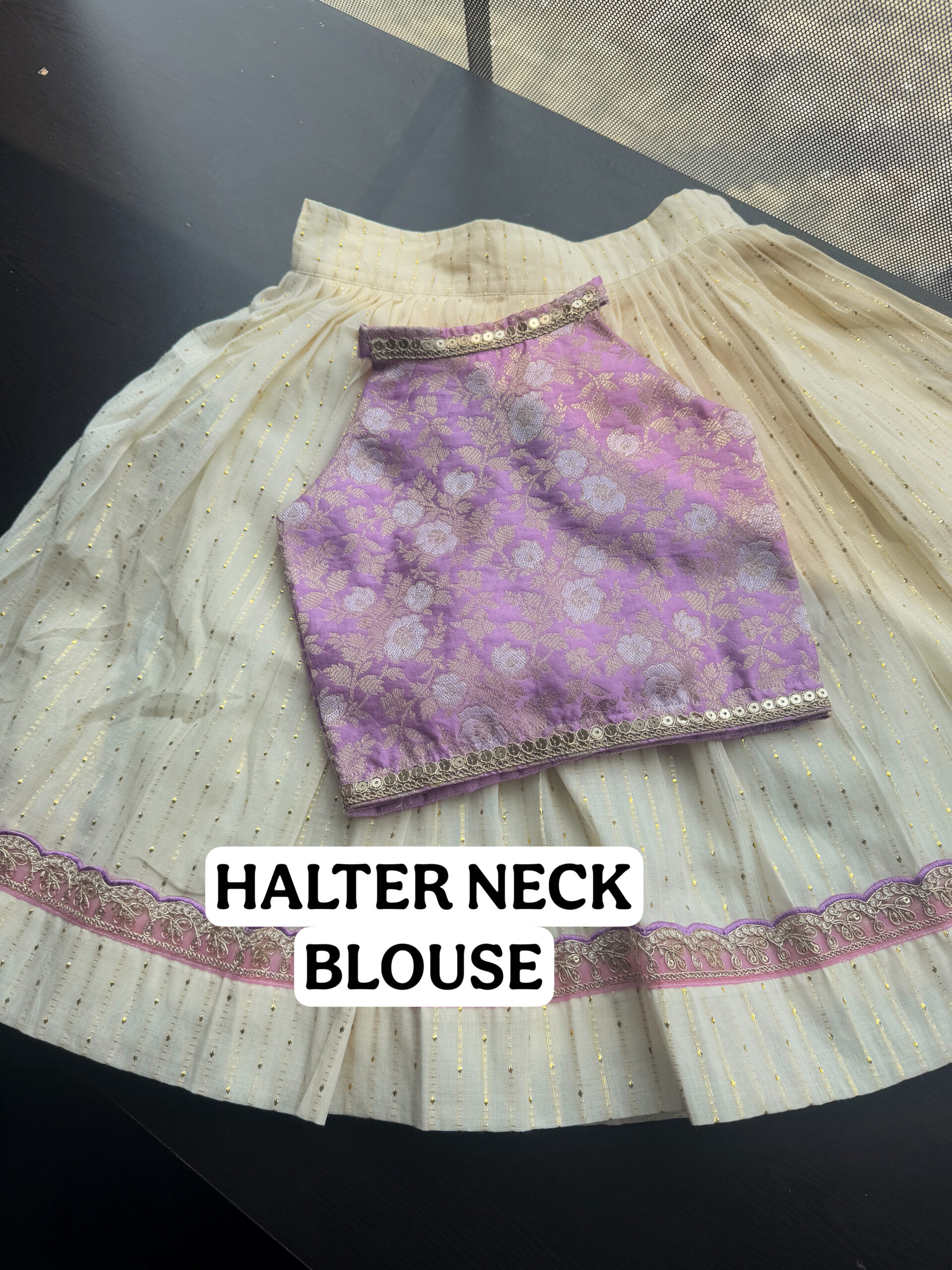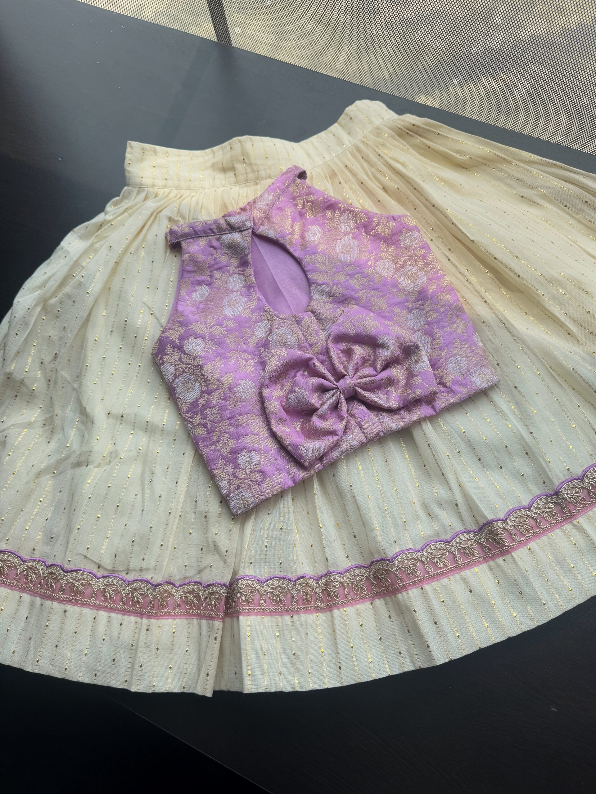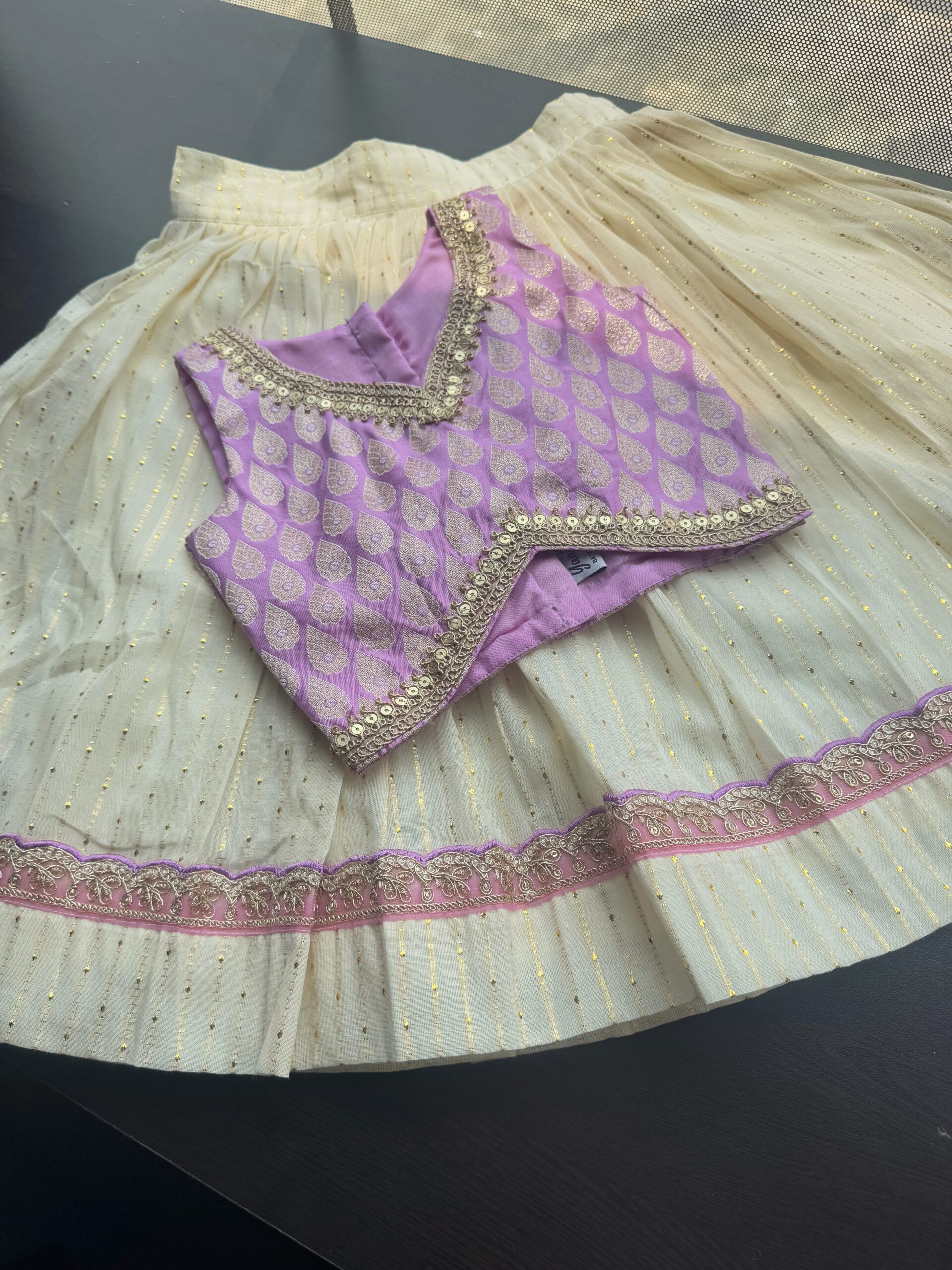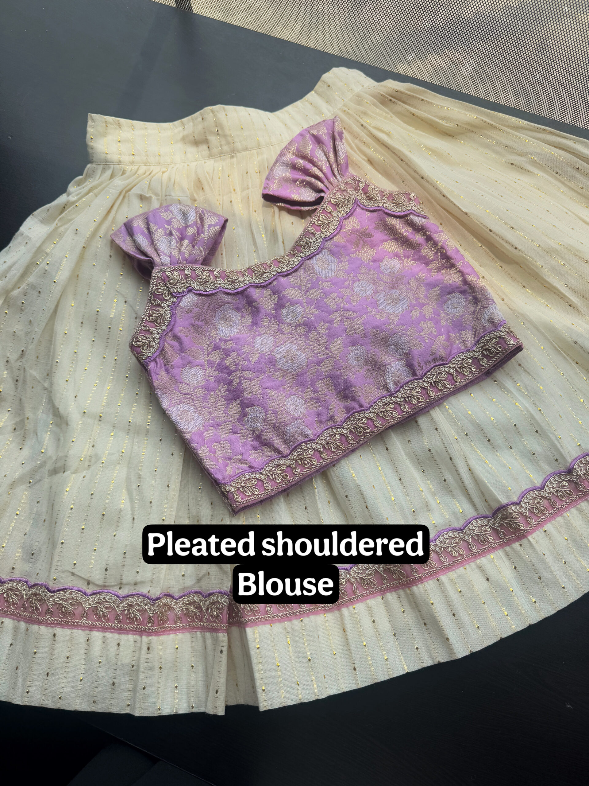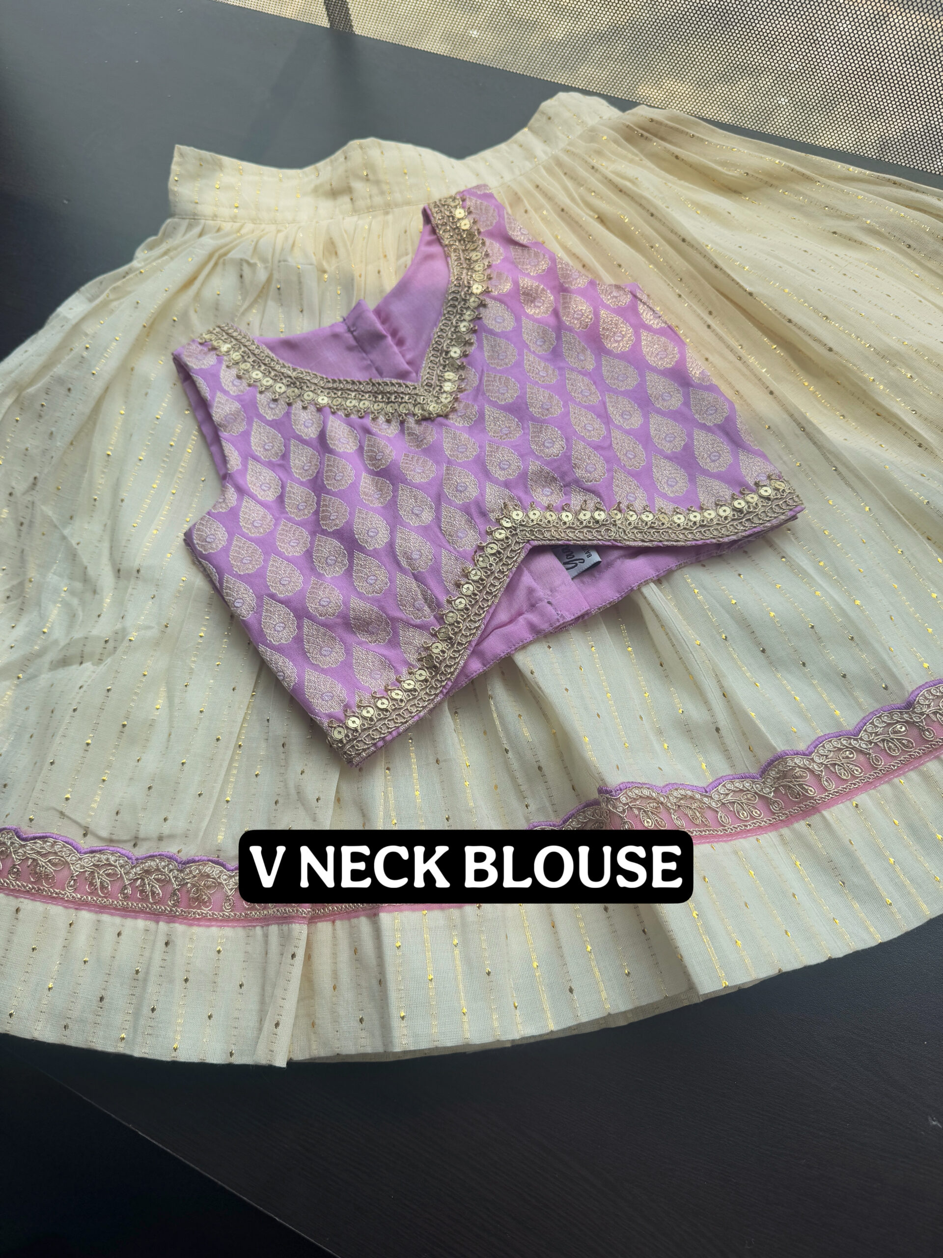 ▪Material :- LUREX COTTON SKIRT WITH LACE BORDER AND BANARSI SILK BLOUSE
